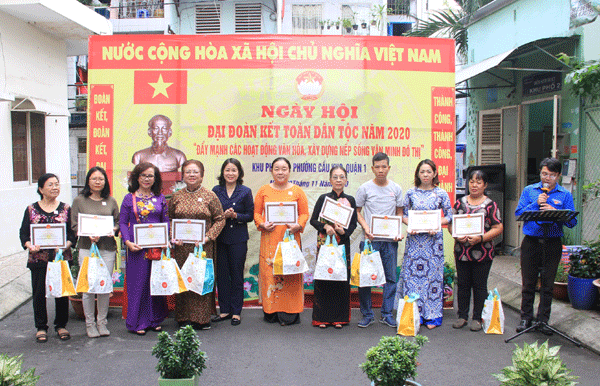 Dịp này UBND phường Cầu Kho tặng giấy khen cho 11 gương người tốt việc tốt (khu phố 2) và 12 gương người tốt việc tốt (khu phố 3); Ủy ban MTTQ Việt Nam phường tặng 14 phần quà cho hộ nghèo, cận nghèo cho người dân 2 khu phố với tổng trị giá 2,8 triệu đồng; khu phố 2 tặng 20 phần quà cho hộ nghèo, cận nghèo tổng trị giá 5 triệu đồng, khu phố 3 tặng 17 phần quà cho hộ nghèo, cận nghèo tổng trị giá 4.250.000 đồng. Cùng ngày, Khu phố 6 cũng đã tổ chức Ngày hội Đại đoàn kết toàn dân tộc ở khu dân cư năm 2020.