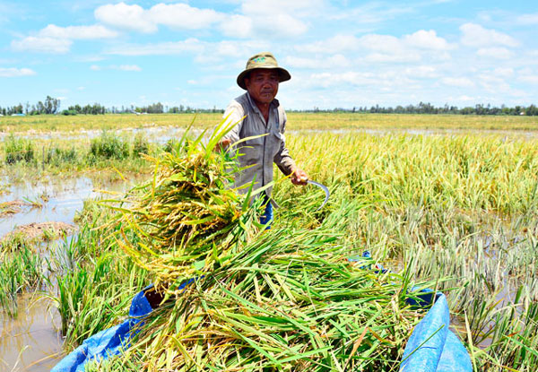 Giữa ruộng lúa ngập nước, ông Võ Văn Hồng (ngụ ấp Chí Thành, xã Tân Thành), cho biết: “Tôi làm 20 công lúa giống ngắn ngày vậy mà cũng phải thu hoạch sớm. Bây giờ thu được bao nhiêu hay bấy nhiêu, 3 tháng trời dầm mưa dãi nắng không lời được một đồng”.
