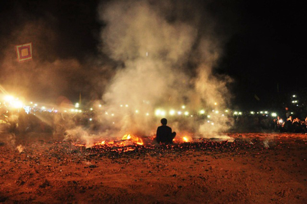 Các chàng trai Pà Thẻn nhảy múa trên đống than hồng rực nhưng không hề sợ hãi