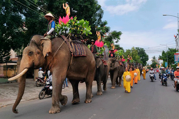 Lần đầu tiên đưa voi vào diễu hành Lễ rước Phật