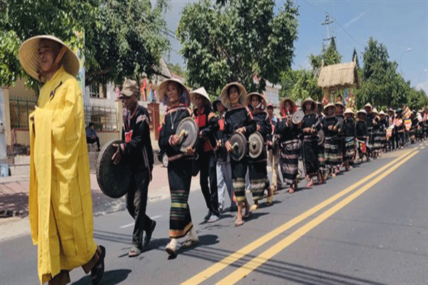 Tham gia lễ rước, các phật tử người Mnông có mang theo chiêng và mặc trang phục truyền thống, đoàn đi bộ diễu hành qua đường Nguyễn Tất Thành, QL27 và nhiều tuyến đường chính nơi trung tâm huyện Lắk