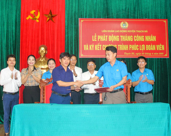 Tháng Công nhân năm 2021 được Liên đoàn Lao động huyện Thạch Hà (Hà Tĩnh) phát động với chủ đề: “Đoàn kết, sáng tạo, vượt khó, phát triển” với các hoạt động trọng tâm: đẩy mạnh các phong trào thi đua trong các cấp công đoàn, đoàn viên, công nhân viên chức, người lao động; phát động Chương trình “75 nghìn sáng kiến, vượt khó, phát triển” do Tổng Liên đoàn phát động; tiếp tục tổ chức các hoạt động chăm lo đời sống đoàn viên, người lao động; tổ hức các chương trình đối thoại, tọa đàm với chủ đề “Lắng nghe - thấu hiểu - chia sẻ”, “Cảm ơn người lao động”; thực hiện hiệu quả chủ đề “Nâng cao chất lượng đội ngũ cán bộ công đoàn cơ sở”; đảm bảo công tác an toàn vệ sinh lao động,…