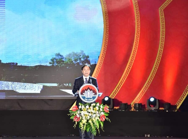 Phó Bí thư Tỉnh ủy Hà Tĩnh Hoàng Trung Dũng phát biểu tại buổi lễ. Ảnh: P.V