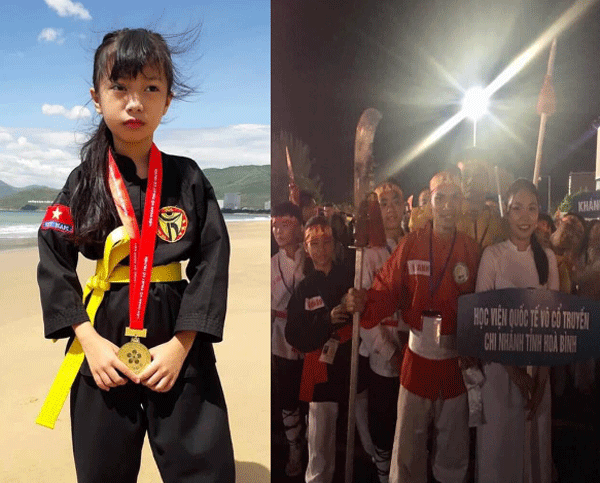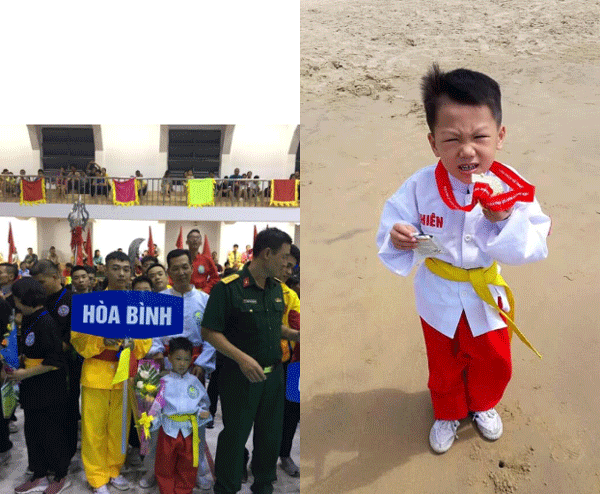 Vận động viên Nguyễn Cát Tường, 9 tuổi, đạt Huy chương vàng - Học Viện Quốc tế Võ cổ truyền tỉnh Hòa Bình tham dự Liên hoan Tinh hoa Võ việt quốc tế lần thứ II tại Bình Định