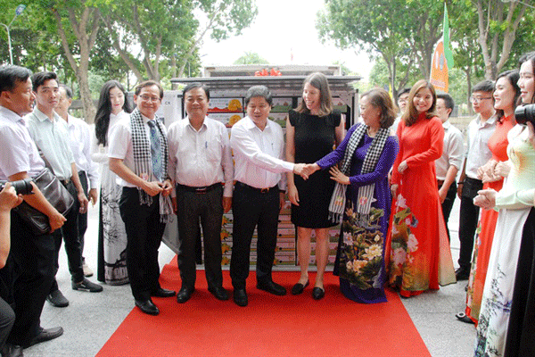 Thứ trưởng Bộ NN-PTNT Lê Quốc Danh cùng các ban ngành và lãnh đạo tỉnh Đồng Tháp thực hiện nghi thức đưa những thùn xoài lên xe để xuất khẩu sang Hoa Kỳ