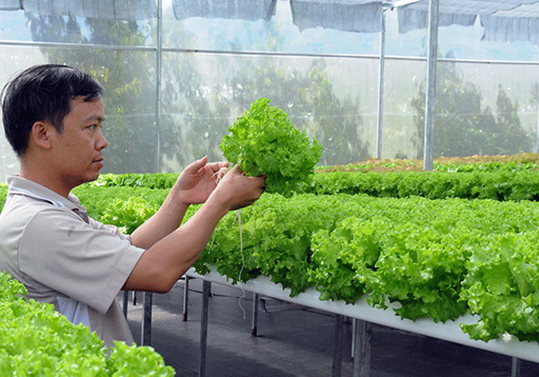 Sau những chuyến tham quan thực tế các mô hình trồng rau sạch tại thành phố Đà Lạt, anh Huấn đã đầu tư gần 800 triệu đồng để xây dựng nhà kính trồng rau sạch theo phương pháp thủy canh.