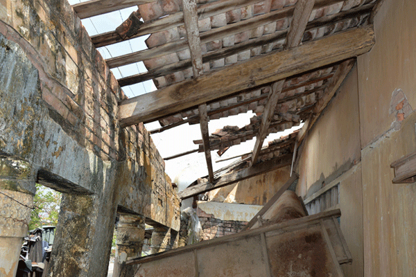 Phần mái của Di tích Trụ sở Ủy ban Khởi nghĩa bị hư hỏng nghiêm trọng