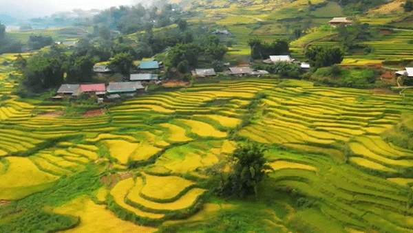 Bên cạnh việc ngắm thung lũng mường hoa, thăm quan các bản làng Sapa xinh đẹp du khách còn có cơ hội ngắm ruộng bậc thang trải dài vàng óng từng lớp từng lớp thì còn gì tuyệt vời hơn?