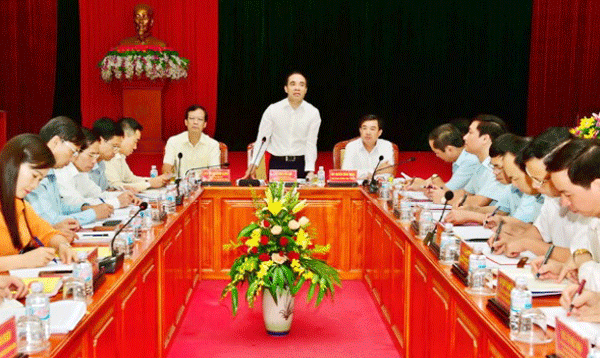Thường trực Tỉnh ủy Tuyên Quang làm việc với lãnh đạo chủ chốt huyện Na Hang ngày 23/4/2018. Ảnh: Internet