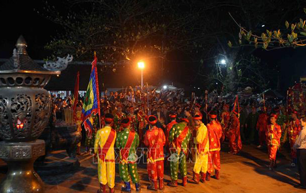 Nghi lễ rước kiệu Ấn và kiệu vua Trần. Ảnh: Thanh Tùng/TTXVN