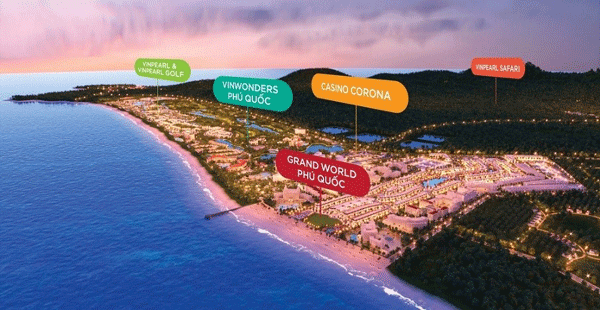 Ở đây hội tụ tất cả những gì du khách cần cho một kỳ nghỉ “hưởng thụ, vui chơi, nghỉ ngơi, khám phá” với các địa chỉ hấp dẫn như: VinWonders - Công viên chủ đề lớn nhất Việt Nam sở hữu loạt kỷ lục có 1-0-2; Vinpearl Safari – một trong những công viên bảo tồn động vật bán hoang dã lớn nhất Châu Á; Corona Casino 5 sao tiêu chuẩn quốc tế, sân gôn 18 hố, hay khả năng đáp ứng nhu cầu lưu trú lên tới hơn 10.000 phòng khách sạn đủ phân khúc… Cùng với đó là “thành phố không ngủ” Grand World náo nhiệt suốt đêm ngày và các show diễn thực cảnh với công nghệ hiện đại nhất thế giới. Đây chính là mô hình mà các thành phố du lịch nổi tiếng thế giới đang vận hành.