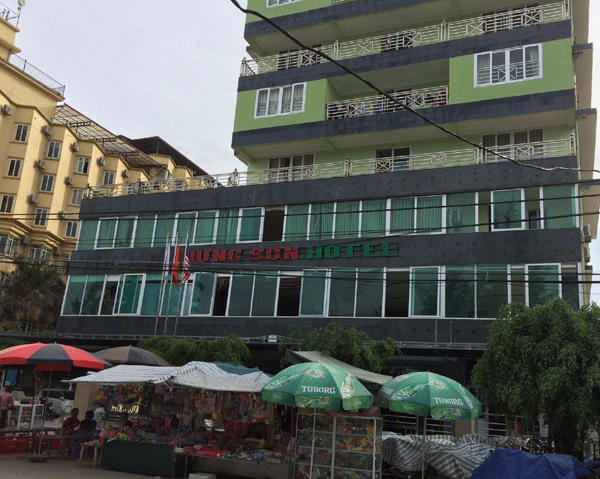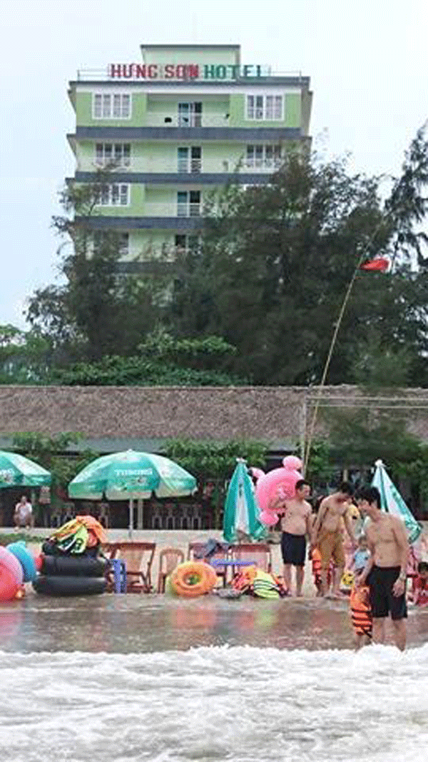 Ở đây có khá nhiều khách sạn lớn, chúng tôi quyết định chọn khách sạn Hưng Sơn. Tại sao chúng tôi lại chọn khách sạn Hưng Sơn để nghỉ ngơi? Vì khách sạn này nằm đối diện ngay bãi biễn, cách chỉ khoảng tầm vài chục mét, đi bộ vài phút là đến biển.
