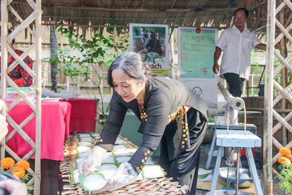 Nghệ nhân đến từ Phong Điền trình diễn làm bánh hỏi mặt võng.