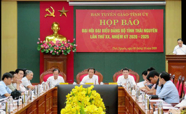 Quang cảnh họp báo Đại hội đại biểu Đảng bộ tỉnh Thái Nguyên lần thứ XX.