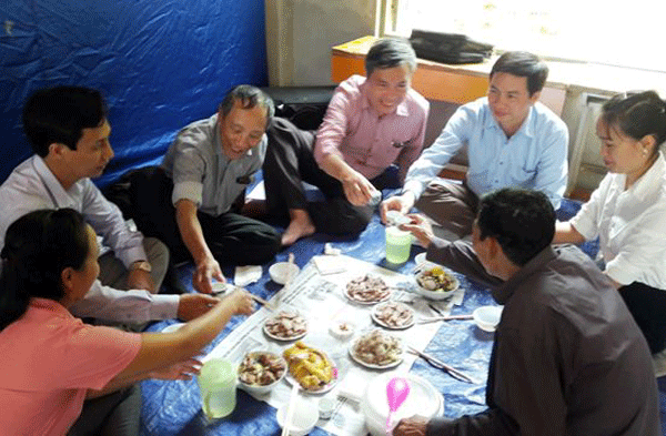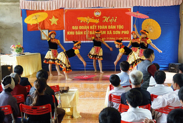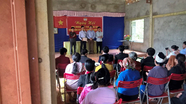 Ông Nguyễn Trọng Đoan, Thường vụ Huyện uỷ, Trưởng ban Dân vận huyện Na Hang; ông Triệu Tiến Phin, Chủ tịch UBND xã Sơn Phú đã về dự với Ngày hội đại đoàn kết toàn dân tộc xã bản Tàm.