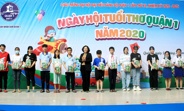 Dịp này, Quận 1 tặng 200 phần quà cho các em thiếu nhi có hoàn cảnh khó khăn 10 phường, các mái ấm nhà mở với tổng trị giá 30 triệu đồng.