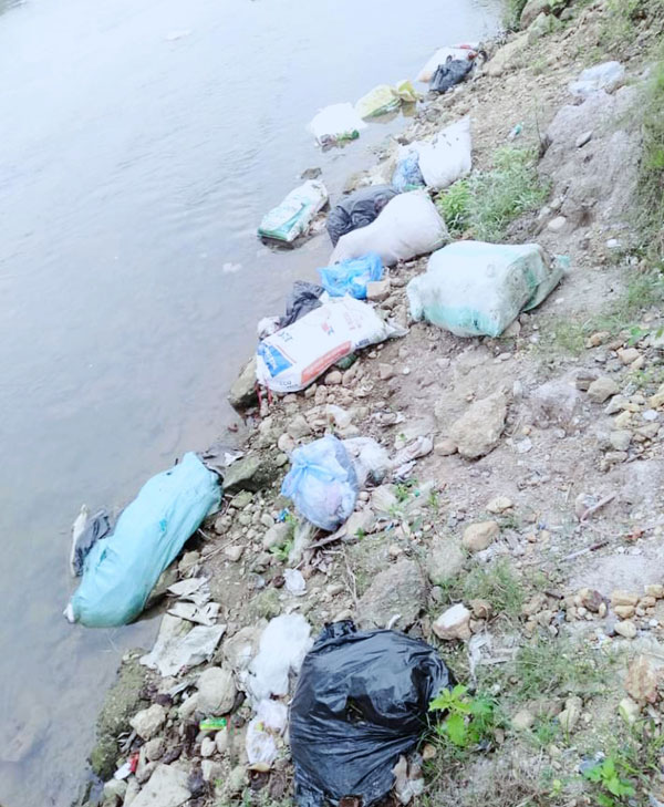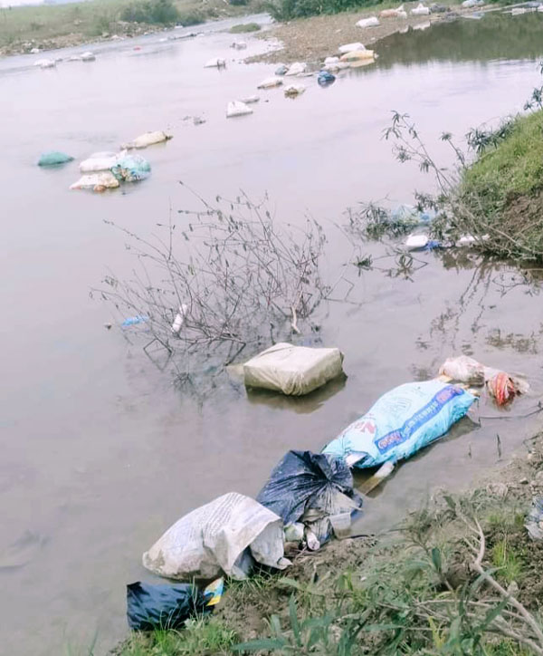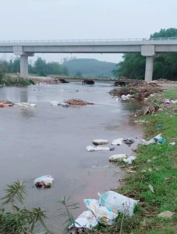 Rác tràn ngập dòng sông.