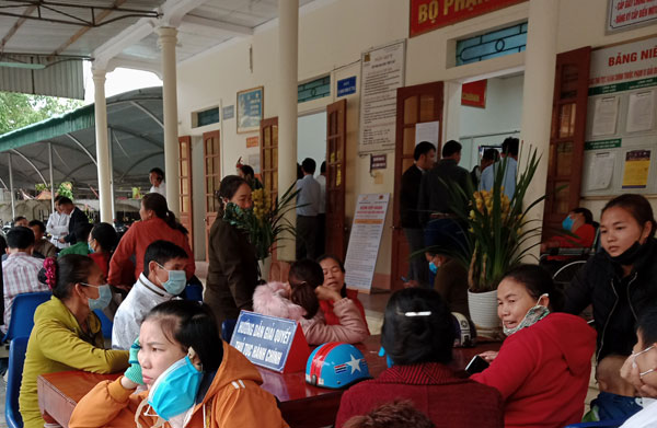 Rất đông người dân đến Công an huyện Quỳ Hợp để làm thẻ căn cước công dân.