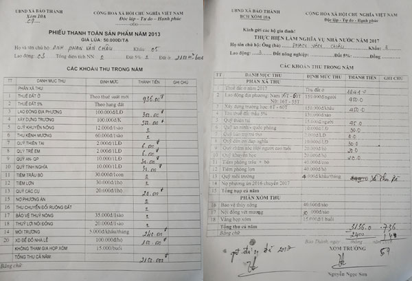 Trong khi đó, những hộ liền kề như hộ ông Nguyễn Danh Ba chỉ phải đóng 150.000 đồng (năm 2018), và hộ ông Nguyễn Văn Đài là 300.000 đồng (năm 2018).