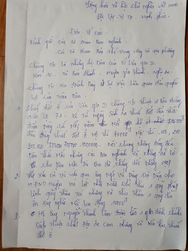 Đơn tố cáo của người dân gửi tới cơ quan báo chí...