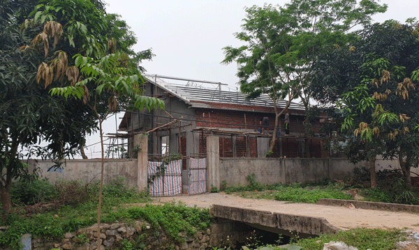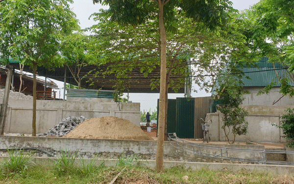 Qua kiểm tra thì hiện hộ ông Nguyễn Long (xóm Phú Xuân) đã xây dựng công trình trên đất nông nghiệp (đất mô hình cá lúa được giao theo Nghị định 64/NĐ-CP), trên đất BHK (đất trồng cây lâu năm) và đất BCS (đất bằng chưa sử dụng với phần diện tích là 265m2). Công trình của ông Long được xây dựng một phần trên thửa đất số 956, số 979, số 980, số 978 và một phần thửa đất số 977.