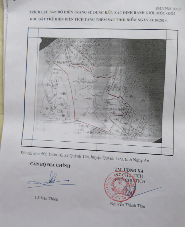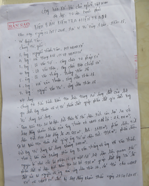 Biên bản kiểm tra hiện trạng được chính quyền xã xác lập