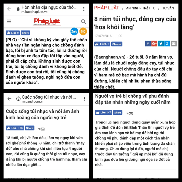 Sau khi biết chuyện vũ phu và sự liều lĩnh, manh động của Hải, nhiều tờ báo đã vào cuộc đưa tin như báo Nghệ An: “8 năm đắng cay, tủi nhục của “hoa khôi làng”, Báo Công an Nhân dân có bài viết: “Người vợ trẻ bị chồng vũ phu đánh đập tàn nhẫn những ngày cuối năm”, Báo Công an Nghệ An: “Cuộc sống tủi nhục và nỗi ám ảnh kinh hoàng của người vợ trẻ”. Báo Pháp luật Việt Nam có bài: “Hôn nhân địa ngục của thôn nữ... yêu qua điện thoại'. Báo Gia Đình: “Lấy nhầm chồng vũ phu cờ bạc, cô gái từ hoa khôi xóm thành mẹ 4 đứa con đầy tủi nhục”…