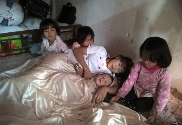 Hiện tại cuộc sống của 5 mẹ con chị Hồ Thị Xuân vô cùng khổ cực, phải sống nương tựa vào nhà ông bà ngoại nhiều năm nay. Do thiếu ăn và bàn tay chăm sóc của bố mẹ, 4 đứa con nheo nhóc, suy dinh dưỡng nghiêm trọng.