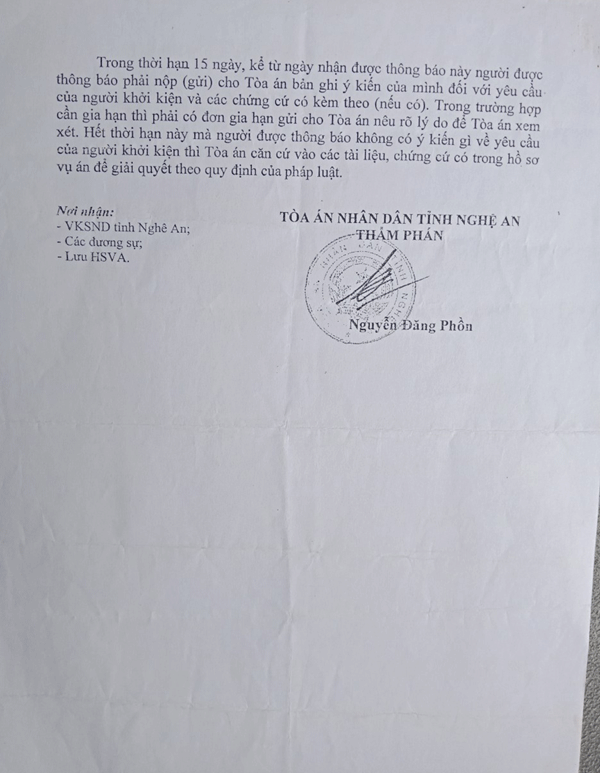 Thông báo thụ lý vụ án từ tháng 11/2016 nhưng đến nay TAND tỉnh Nghệ An vẫn không đưa vụ án ra xét xử?
