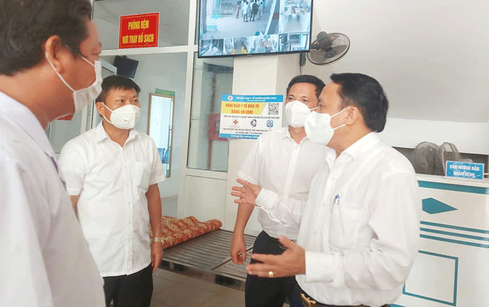 PGS.TS Dương Đình Chỉnh, Phó Ban chỉ đạo phòng chống Covid-19 kiểm tra tại bệnh viện dã chiến số 2 Nghệ An. Ảnh: P.V