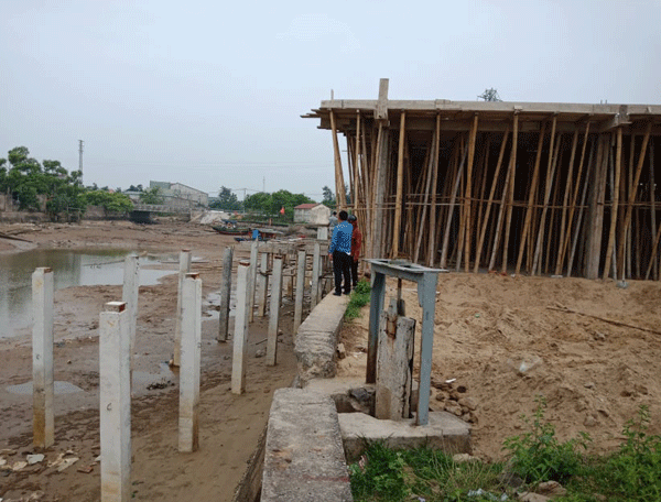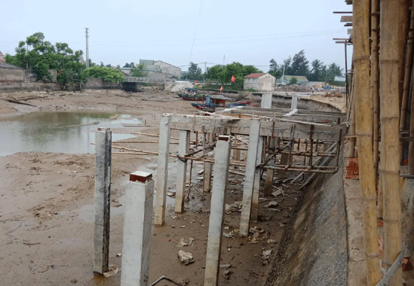 Chủ đầu tư cho các hộ dân chôn cả trụ điện xuống sống để làm nhà lấn qua kè chắn sóng