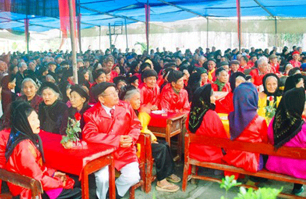 Năm nay là năm đại yến, ở xã thành lập Ban vận động giao cho các xóm vận động, xã tổ chức cho các cụ, sau đó xóm tổ chức hậu cần đầy đủ cho các cụ. Ngoài ra, xã hỗ trợ cho các cụ mỗi người 10 ngàn tiền chè nước. Chứ nhiều nơi chỉ bố trí ăn uống cho các cụ xong là thôi.