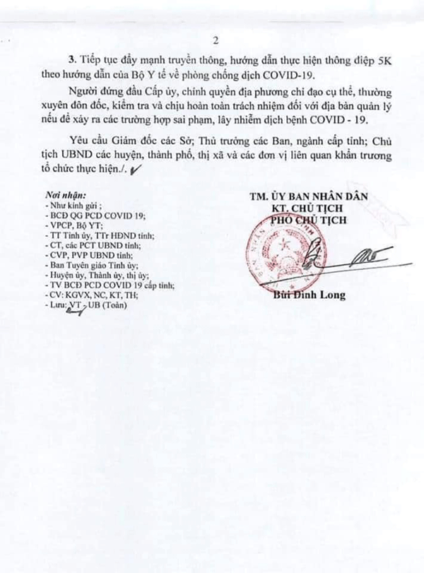 Tiếp tục đẩy mạnh truyền thông, hướng dẫn thực hiện thông điệp 5K theo hướng dẫn của Bộ Y tế về phòng chống dịch COVID-19, tuyên truyền về việc tiến hành xử phạt những trường hợp không đeo khẩu trang tại nơi công cộng.