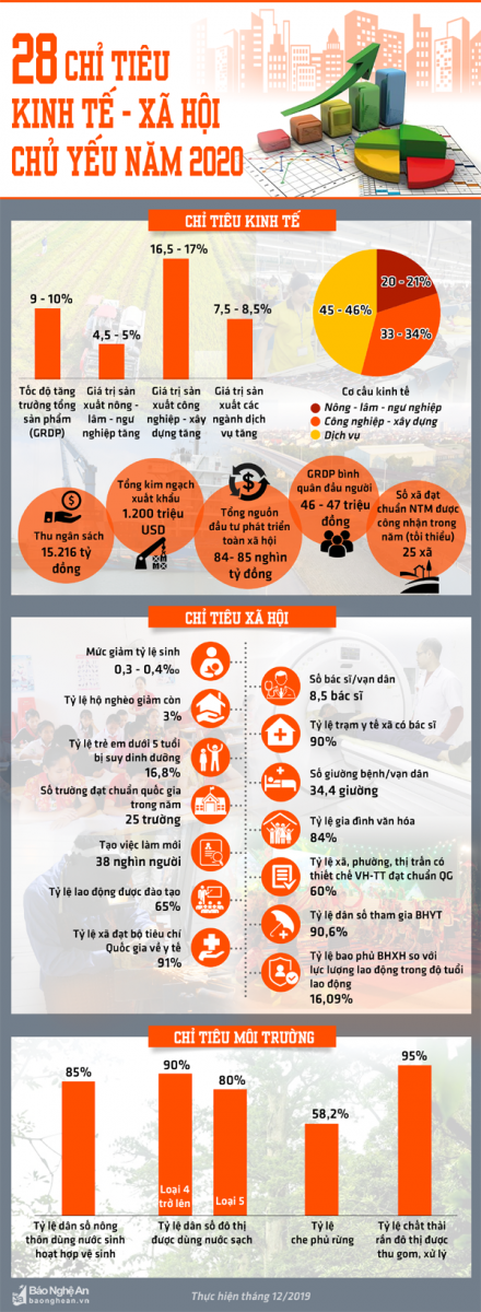 Do bị ảnh hưởng của dịch Covid-19 nên tốc độ tăng trưởng tổng sản phẩm trên địa bàn tỉnh (GRDP) 6 tháng đầu năm ước tăng 2,69 %, nhưng đây là mức tăng trưởng cao so với bình quân chung của cả nước và nhiều tỉnh, thành khác. Điểm sáng của kinh tế Nghệ An 6 tháng đầu năm chính là lĩnh vực nông nghiệp, tốc độ tăng trưởng khu vực nông, lâm, thủy sản ước tăng 4,98 %, cao hơn cùng kỳ năm 2019. UBND tỉnh đã tập trung chỉ đạo, giải quyết kịp thời các vấn đề trọng tâm, phát sinh đối với các dự án hạ tầng trọng điểm ở khu công nghiệp VSIP, WHA, khu công nghiệp Hoàng Mai I. Phân bổ kịp thời các nguồn vốn kế hoạch năm 2020 tới các chủ đầu tư để thực hiện các công trình trọng điểm, kết quả giải ngân kế hoạch vốn đầu tư công 6 tháng ước đạt 42,85% kế hoạch, cao hơn mức bình quân của cả nước.
