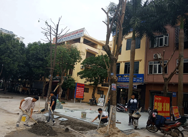 Ngoài việc chặt phá cây xanh, ông Dương còn ngang nhiên đào xới, thay đổi gạch, kết cấu vỉa hè khi chưa được cơ quan chức năng có thẩm quyền cấp phép.