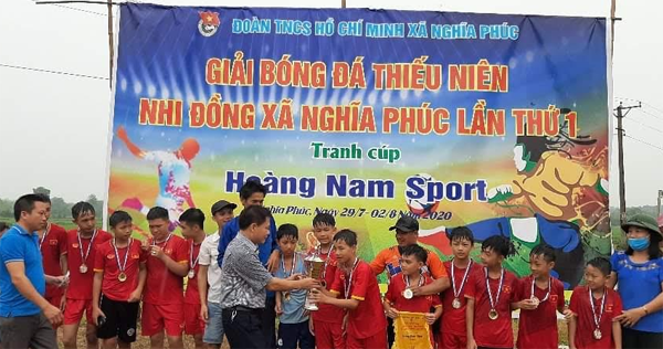 Đoàn xã Nghĩa Phúc đã liên hệ với Công ty Hoàng Nam Spost, liên hệ với thầy có chuyên môn về bóng đã tổ chức một lớp bóng đá cộng đồng với 35 thiếu niên nhi đồng trong xã tham gia. Tổ chức giải bóng đá thiếu niên lần thứ nhất với 7 đội tuyển tham gia.