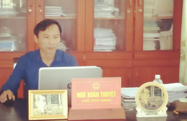 Ông Ngô Xuân Thuyết, Chủ tịch UBND xã làm việc với phóng viên. Ảnh: P.V