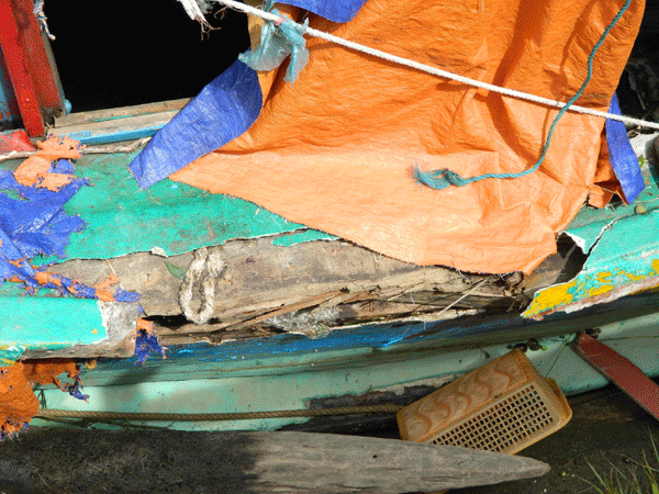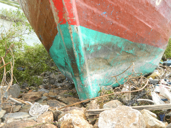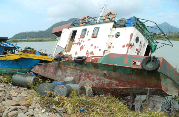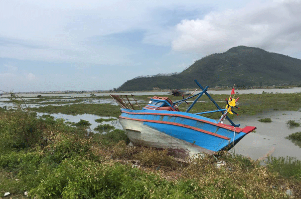 Tàu bị đánh dạt lên bờ đê