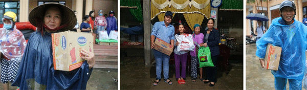 100 phần quà đầu tiên đã được trao đến tay người dân miền Trung đang gặp khó khăn vì bão lũ