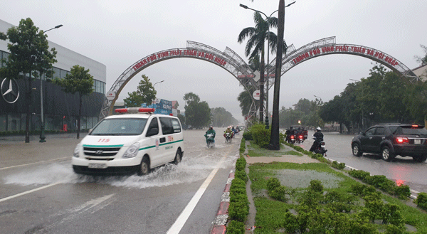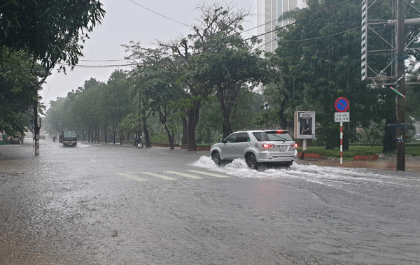 Nhiều tuyến đường tại TP Vinh ngập lụt nặng do hoàn lưu bão số 9 gây mưa lớn mấy ngày nay.