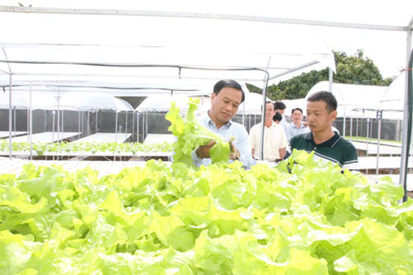 Lãnh đạo tỉnh Đồng Tháp tham quan một mô hình trồng rau hữu cơ, thông minh trên địa bàn