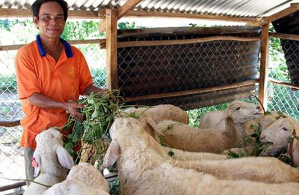 Mô hình nuôi cừu vỗ béo của người dân huyện Thuận Bắc (̉Ninh Thuận). Ảnh : Thành Công Thử - TTXVN