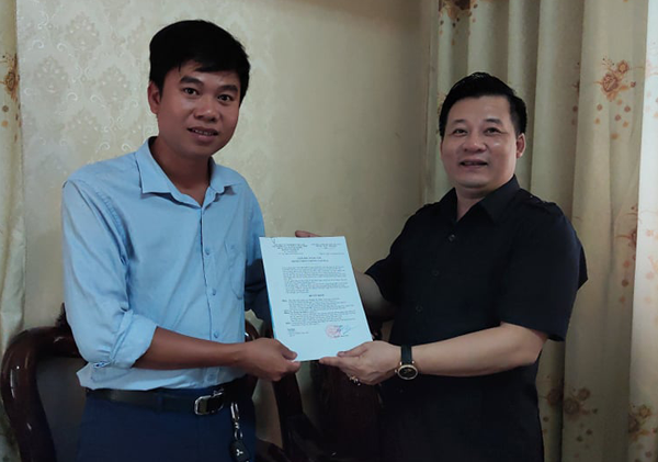 Thay mặt Viện nghiên cứu Văn hoá và Phát triển - Liên hiệp các Hội Khoa học và Kỹ thuật Việt Nam, ông Nguyễn Danh Hoà trao Quyết định bổ nhiệm Phó Giám đốc Trung tâm truyền thông Phương Nam Plus cho ông Hoàng Văn Kiểm (bìa trái) - Ảnh: P.V