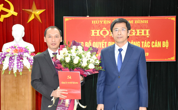 Trao quyết định và tặng hoa chúc mừng Bí thư huyện ủy, Chủ tịch UBND huyện Lâm Bình Nguyễn Văn Dưng, Trưởng Ban Tuyên giáo Tỉnh ủy Tạ Đức Tuyên đồng thời nhấn mạnh, đây là vinh dự nhưng là trọng trách lớn của đồng chí tân Bí thư, Chủ tịch UBND huyện trên cương vị mới.