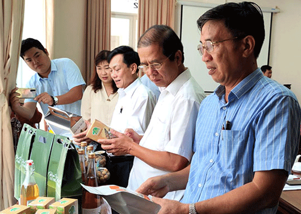 Các đại biểu tham quan, tìm hiểu các sản phẩm được trưng bày tại kỳ họp Hội đồng đánh giá và xếp hạng sản phẩm OCOP TP Cần Thơ diễn ra ngày 20-10-2020 tại UBND TP Cần Thơ.