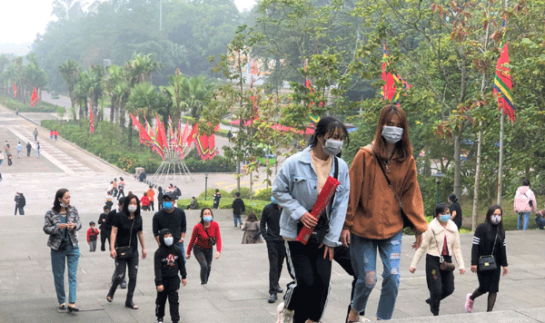 Du khách đến tham quan Khu Di tích lịch sử Đền Hùng đều đeo khẩu trang, nghiêm túc thực hiện công tác phòng chống dịch, chiều 4 Tết Nguyên đán Tân Sửu 2021. Ảnh minh họa: Viết Tôn/Báo Tin tức