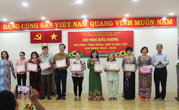 Dịp này, UBND phường Cô Giang biểu dương 2 dòng học học tập; 4 đơn vị học tập; 5 cộng đồng học tập và 30 gia đình học tập tiêu biểu giai đoạn 2016 - 2020.