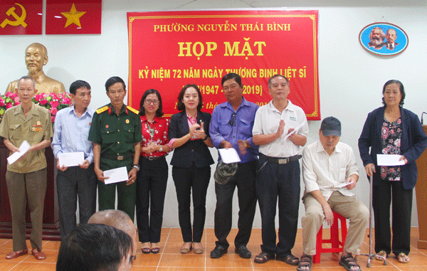 Tại buổi họp mặt, Phó Chủ tịch UBND phường Trần Thanh Thủy cho biết: Thời gian qua, Đảng ủy, HĐND, UBND, UBMTTQ Việt Nam phường luôn quan tâm thực hiện chính sách Đền ơn đáp nghĩa với nhiều hành động thiết thực, thực hiện tốt công tác quản lý 226 người có công với cách mạng, thân nhân liệt sĩ, chăm lo phụng dưỡng suốt đời Mẹ Việt Nam anh hùng - Anh hùng lực lượng vũ trang nhân dân Nguyễn Thanh Tùng với số tiền 5 triệu đồng/tháng và thương binh hạng nặng Trần Công Hiệu với số tiền 2 triệu đồng/tháng. Trong năm 2018, UBND phường đã chăm lo đột xuất cho hộ ông Trần Phú Cường thuộc diện thương binh có hoàn cảnh khó khăn với số tiền 5 triệu đồng.