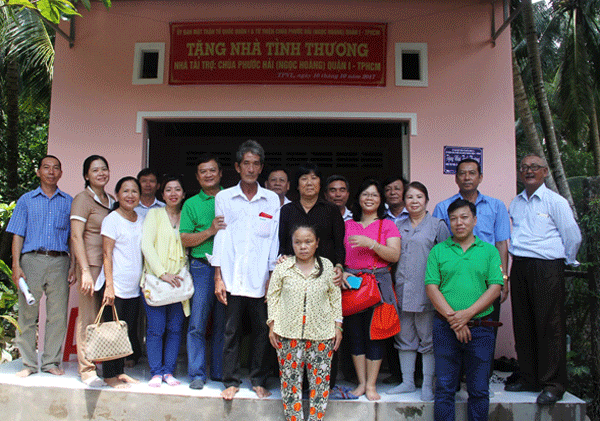 Gia đình ông Nguyễn Văn Năm thuộc hộ cận nghèo, bản thân ông là trụ cột trong gia đình, thường ngày đi bán vé số nuôi 2 người con và người vợ bệnh. Nhiều năm qua, ông sống cùng gia đình trong căn nhà 40m2 với vách nhà bằng tôn, mái tôn thì mục nát, nền nhà bằng đất thường xuyên bị ngập nước mà không có tiền để sửa, gặp nhiều khó khăn trong sinh hoạt hàng ngày. UBMTTQ Việt Nam Quận 1 đã vận động Chùa Phước Hải hỗ trợ 40 triệu đồng sửa chữa mới căn nhà với các hạng mục như lợp tôn, xây tường gạch, nâng nền và lót gạch men.