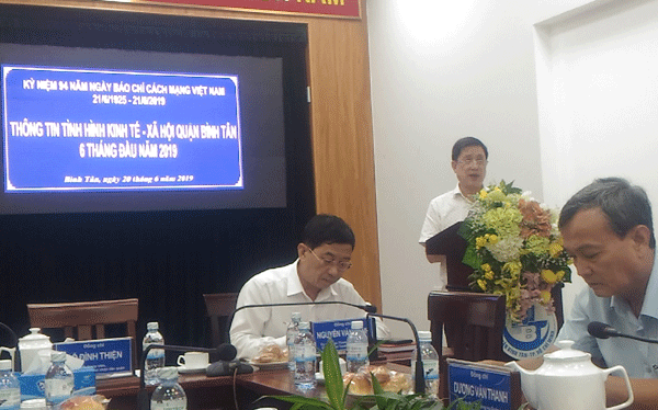 Báo cáo tại buổi họp mặt, ông Đỗ Đình Thiện - Phó Chủ tịch UBND quận Bình Tân cho biết, tổng giá trị sản xuất kinh tế trong 6 tháng đầu năm 2019 đạt mức 33.559,7 tỷ đồng (50,46% so với kế hoạch cả năm). Hiện tại có 44.727 đơn vị hoạt động kinh tế đang hoạt động trên địa bàn quận trong đó 20.743 đơn vị doanh nghiệp và 23.984 hộ sản xuất kinh doanh cá thể.